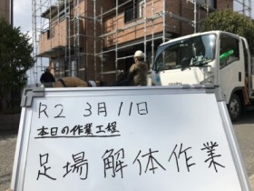 本日はいよいよ足場を解体し、完工となる予定の物件があります。