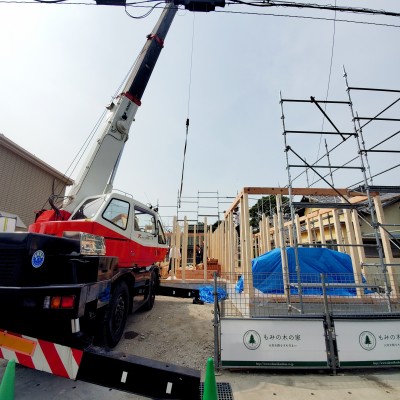 本日、鳴門市撫養町にて『もみの木の家』の棟上げを行いました(^o^)/