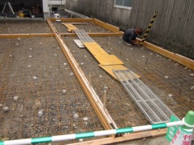 施工する形状の型枠を設置します。型枠にはコンパネと呼ばれる板などを使用し枠の設置を行います。
